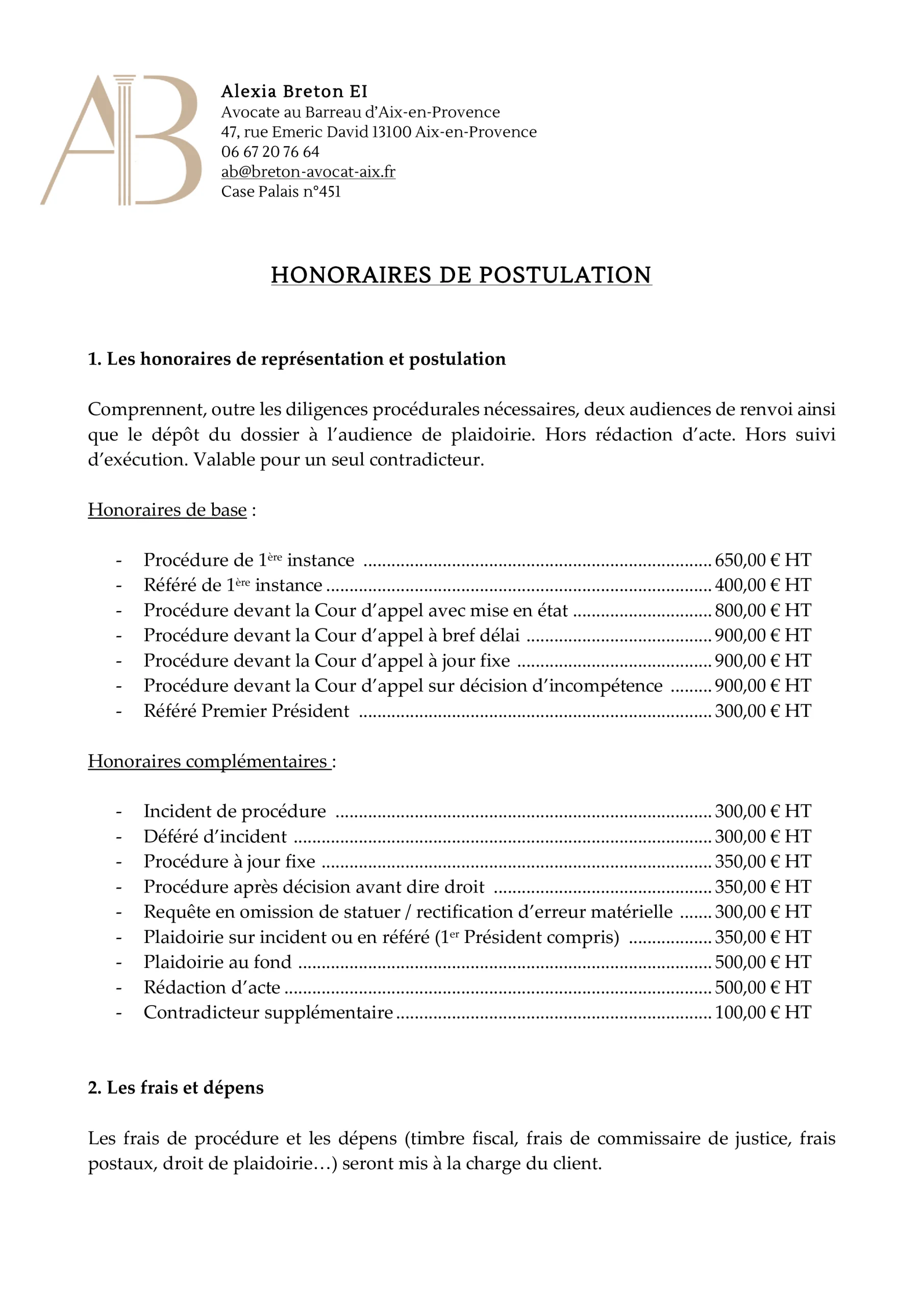 Titulaire d’un Master 2 en Procédure civile et voies d’exécution, Maître Alexia Breton met à disposition de ses Consœurs et Confrères ses compétences et son expérience en matière de postulation auprès des Tribunaux et de la Cour d’appel d’Aix-en-Provence.