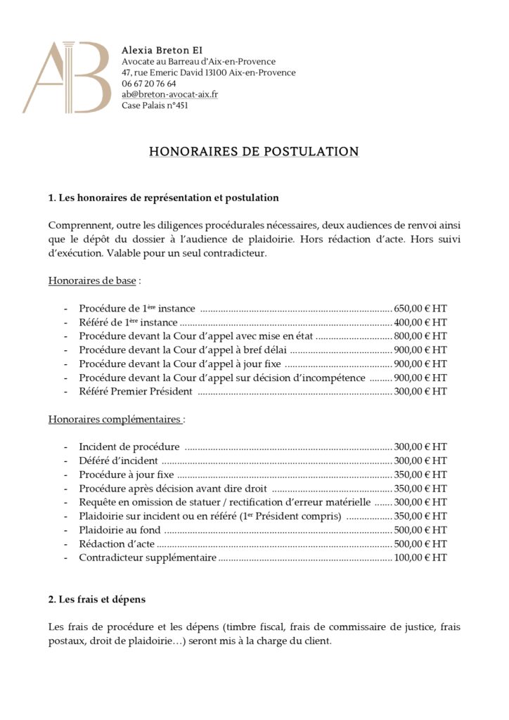Postulation devant les Tribunaux et la Cour d'appel d'Aix-en-Provence
